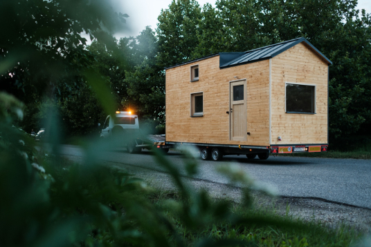 Je náš najpredávanejší a cenovo najvýhodnejší model. Ide o tiny house postavený na našom prívese, ktorý vám privezieme na pozemok a zložíme autožeriavom na pripravenú plochu. Výhodné hlavne pre tých, ktorý sa neplánujú s domčekom často presúvať, nakoľko odpadá cena prívesu. Výhodou je aj umiestnenie v náročnejšom teréne, možnosť pridania viac tepelenej izolácie odspodu domčeka, jednoduchšie pristavenie terasy, nižšia úroveň podlahy, teda nie je potrebné veľa schodov. Podmienkou je ale prístup autožeriavu. Nevýhodou je komplikovanejší následný presun.